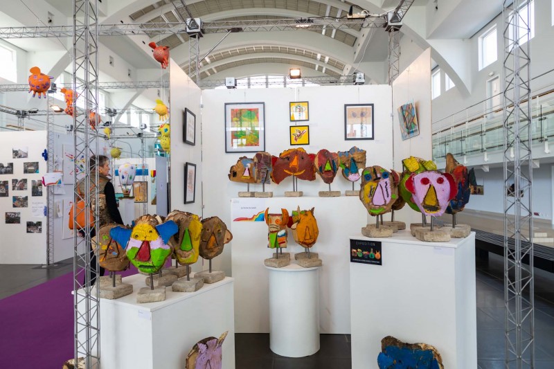 Les 450 œuvres exposées pendant 4 jours à la Cité Miroir sont réalisées par des personnes porteuses de handicap au sein d'ateliers d'art organisés par des institutions, écoles, associations et centres spécialisés.
