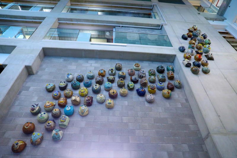 Publié le 13-06-2025 Après Ciel intérieur d’Adrien Lucca, c’est au tour de l’installation artistique Les Nozôtres, signée du duo liégeois Mon Colonel & Spit, de prendre place dans l’Agora du bâtiment.