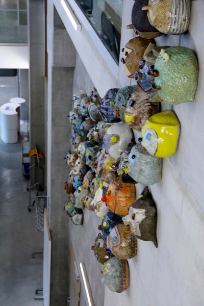 Implantée sur la “tour des livres”, au cœur de l'Agora, Les Nozôtres offre une découverte à plusieurs niveaux : perçue comme une masse organique à distance, elle dévoile à proximité des détails et des visages familiers. Les masques évoquent les folklores locaux (Géants du 15 août, Macrâles…), la bande dessinée, les émojis ou encore les héros masqués du cinéma. Loin de tout stéréotype, l'œuvre joue avec les codes du masque pour incarner à la fois le commun, l'intime et l'imaginaire.