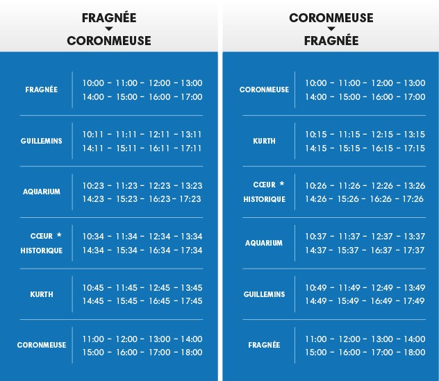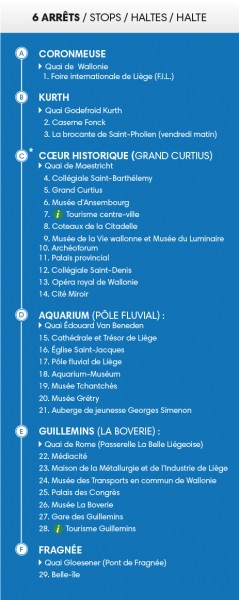 Publié le 30-03-2017 Nouveautés en 2017: ce sont désormais 2 bateaux qui vous transporteront entre 6 arrêts situés entre Coronmeuse et Fragnée, du 1er avril au 31 octobre 2017