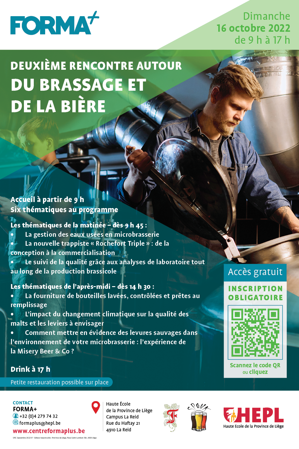 La HEPL, avec le soutien de FORMA+, organise la Deuxième rencontre autour du brassage et de la bière le dimanche 16 octobre 2022 au Campus La Reid.