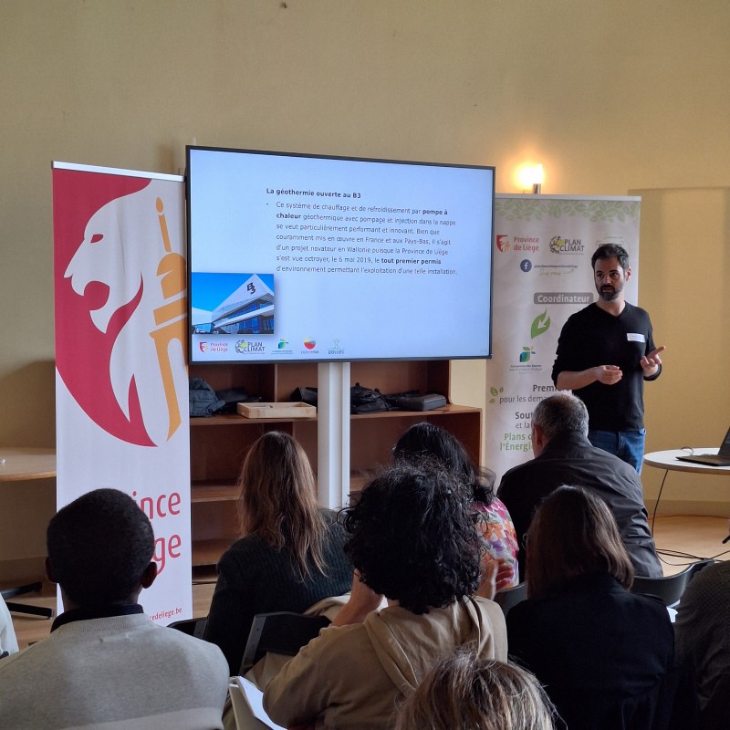 Au programme, Monsieur Jacques Windeshausen, Architecte et porteur de projets chez Wingest a abordé la géothermie active dans l'ancienne carrière de Martelange. Ensuite, Madame Sonya Chaoui, Ingénieure et Responsable en géothermie au SPW nous a présenté le développement de la géothermie minière en Wallonie. Monsieur Corentin Tassignon, Coordinateur POLLEC de la Ville de Liège a exposé la planification de la transition énergétique de la Ville. Enfin, la Direction générale des Infrastructures et du Développement durable a présenté le Plan Climat de la Province de Liège et la géothermie au B3 et à Saint-Laurent.