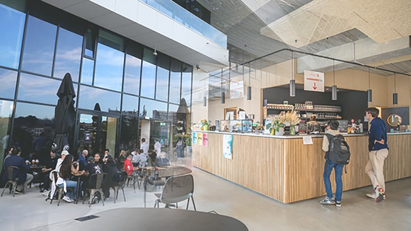 L'espace brasserie est entièrement intégré au B3 et participe pleinement à la vie du lieu.