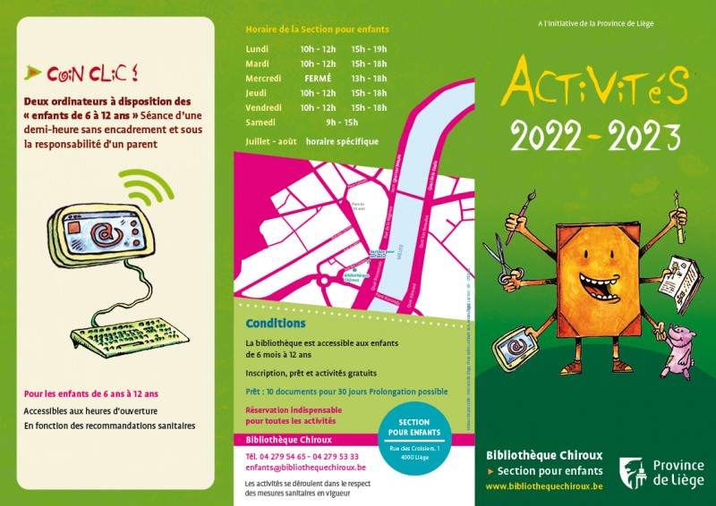 Publié le 14-09-2022 Tu as entre 6 et 12 ans ? Tu aimes bricoler ? Rejoins-nous le troisième mercredi de chaque mois à la section pour enfants de la Bibliothèque Chiroux !