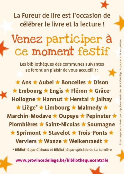 Publié le 26-10-2018 Dans le cadre de la Fureur de lire, les bibliothèques de Jalhay et de Sart vous invitent à un petit-déjeuner littéraire, ainsi qu'à un concours