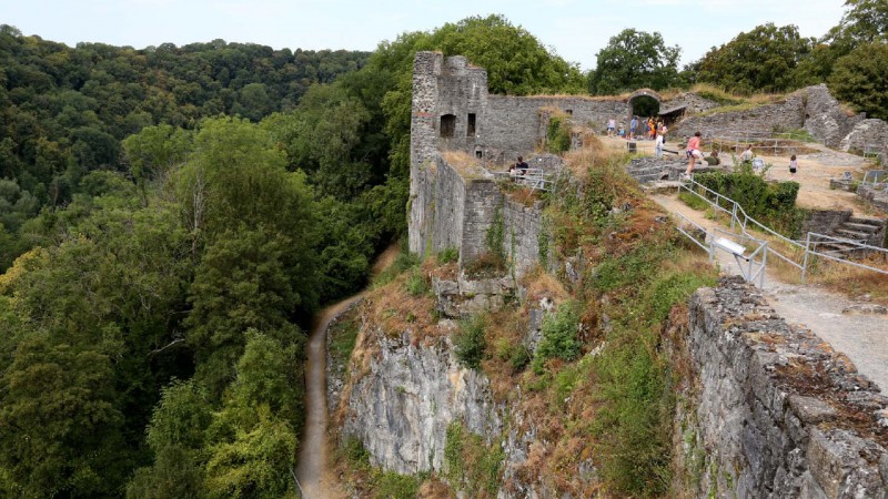 au pied des ruines médiévales les plus vertigineuses de la vallée de l'Ourthe.