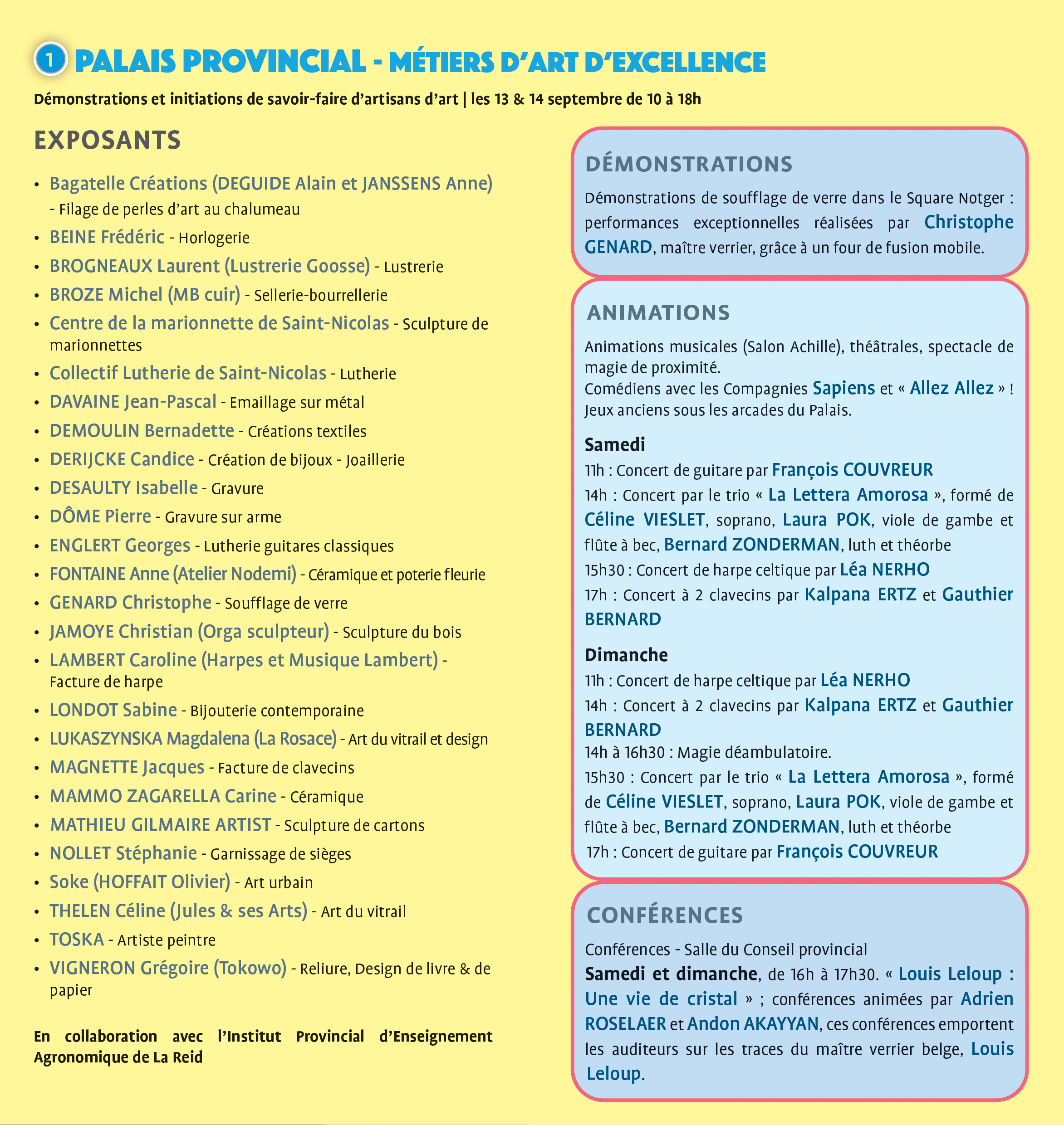 Palais provincial – Métiers d'Art d'Excellence (10h–18h)
